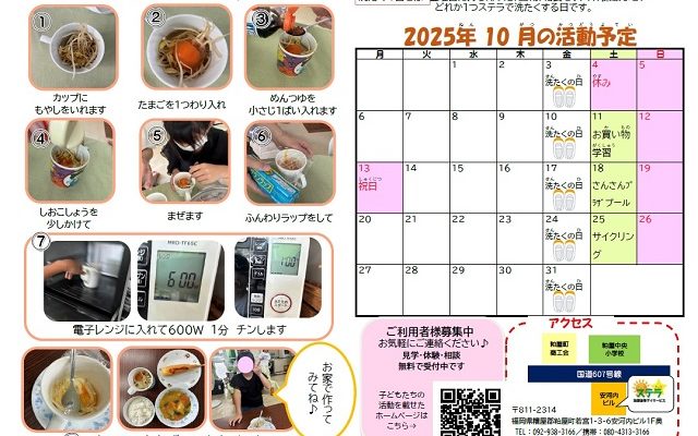 放課後等デイサービス ステラは 粕屋町立図書館横にございます。 目の前に粕屋中央小学校前バス停。 JR長者原駅徒歩3分の便利な場所です。 お気軽に見学に来てください。(要予約)