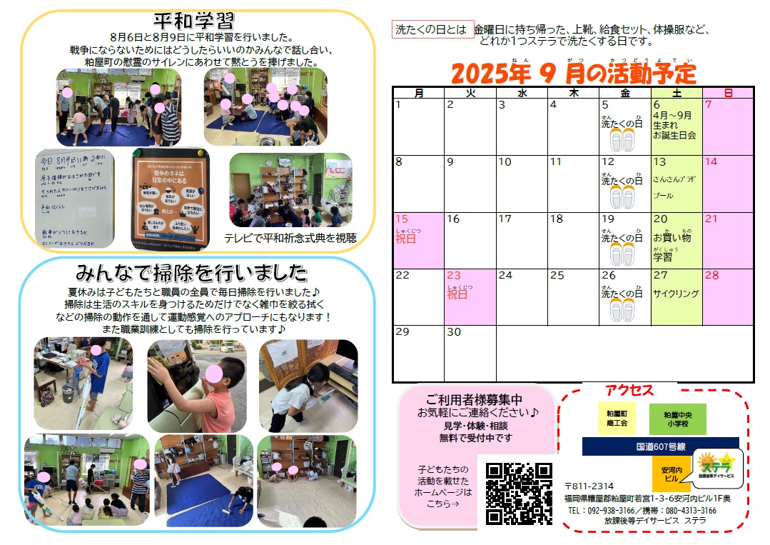ステラだより☆9月号を公開いたします!